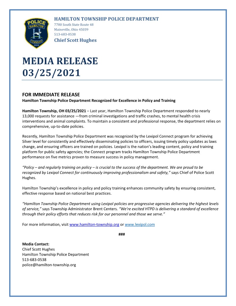 The department has balanced itself to provide services to residents ranging from Vital Records Environmental Health Health Education and Public Health Nursing. Centers reports directly to the Board of Trustees. After a standoff in Hamilton Township ended with officers fatally shooting an armed man Sunday the Hamilton Township Police Department released new.