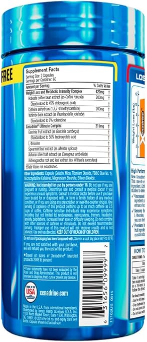 Xenadrine Ultimate is an effective thermogenic weight loss supplement with innovative blue chrome rapid-release capsule that dissolves ultra-fast delivering energizing results to help men women achieve their weight loss goals. Weight Loss and Metabolic Intensity Complex and the Xenadrine Ultimate Complex The ingredients are. Xenadrine Ultimate eleva la energía promueve la concentración y lo prepara para una carrera física y mental que le dejarán boquiabierto.