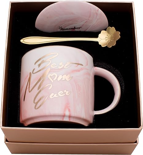 Amazon Com Luspan Mothers Day Gifts Best Gifts For Mom Best Mom Ever Pink Marble Ceramic Coffee Mug 11 5oz And Lid Kitchen Dining