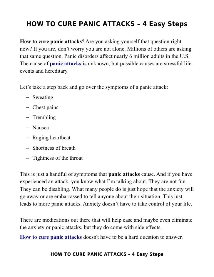 T he good news is that Anxiety and Panic Attacks can be cured. Many people dont know that their disorder is real and highly. A previous post Can Anxiety Disorder and Panic Attacks Be Cured has been the most commented-on opinion article on APH since it was written.