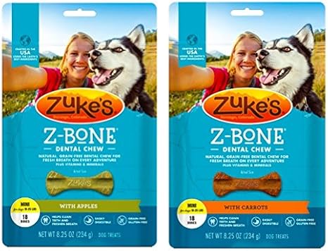 Amazon Com Zuke S Z Bones Natural Grain Free Dental Chew Mini Pack Of 2 Apple And Carrot 36 Chew Bones Total Kitchen Dining