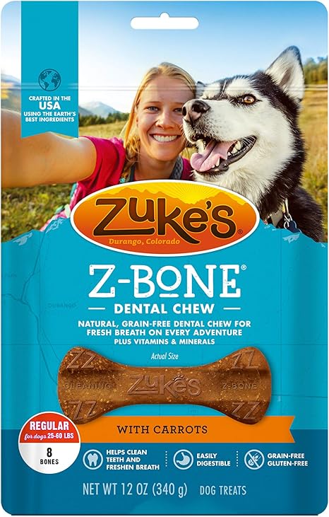 Amazon Com Zuke S Regular Z Bone Grain Free Dental Chew Dog Treats With Carrots 12 Oz Bag 82426 Dry Pet Food Pet Supplies